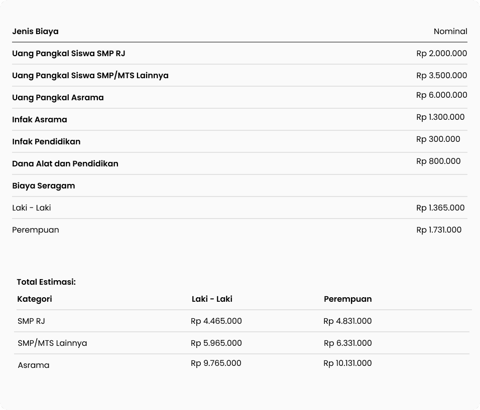 Rincian Biaya Masuk